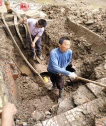 五月一日凌晨三點(diǎn)多鐘,宜城市振興大道聯(lián)通公司門前直徑400mm的鑄鐵管突然爆管。正值五一小長(zhǎng)假,為了能在最短的時(shí)間內(nèi)恢復(fù)供水,公司領(lǐng)導(dǎo)接到市民報(bào)警后,及時(shí)組織搶修人員趕赴事發(fā)地點(diǎn),根據(jù)現(xiàn)場(chǎng)情況,迅速制定搶修方案,組織搶修人員緊急開挖,并同時(shí)制作搶修配件。當(dāng)時(shí)宜城正天降大雨,搶修人員的衣服很快就濕透了,雨水與泥土形成的泥漿濺滿了他們?nèi)恚愤^的市民紛紛投來了敬佩的目光。雖然一身雨一身泥,大家全然不顧,心中只有一個(gè)念頭:盡快把管道維修好保證正常供水,讓市民過一個(gè)快樂的五一勞動(dòng)節(jié)。大家齊心協(xié)力,克服一切困難,連續(xù)作戰(zhàn),最終比預(yù)計(jì)的搶修時(shí)間提前了五個(gè)小時(shí)恢復(fù)正常供水。
