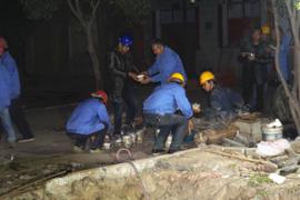 為了配合人民西路(八號路口處)市政道路建設,襄陽中環(huán)公司于10月30日上午9:00開始對該段管道進行停水搶修、改造。工程公司、樊城管網(wǎng)、供水發(fā)展部等部門和單位集中力量組成70人的施工隊伍分別在4個作業(yè)點同時展開奮戰(zhàn)。為了能在48小時內(nèi)恢復供水,將停水對沿線人民群眾的生活影響降到最低,各作業(yè)班組從白天到深夜,連續(xù)施工10多個小時沒有停歇。