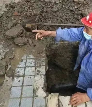 接著報單、通知維修隊開挖,“功夫不負(fù)有心人”,當(dāng)維修工作坑挖至地面一下約1米左右的地方,水流上涌,這段DN110的PE管漏點被精準(zhǔn)找到維修。看著維修人員停水、維修、恢復(fù)供水一氣呵成,用戶們一顆懸著的心也終于放下。
