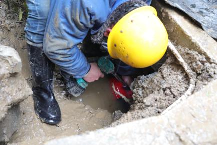 因漏水量大,工作人員來不及更換雨鞋就緊急關(guān)閥止水,為了讓搶修速度更快,師傅們直接跳到1米多深的水泥坑里用鍬、鏟等各類工具開挖漏點(diǎn);拆卸、安裝、焊接,一刻也不停歇;抽干積水,清理路面。大家分工協(xié)作,經(jīng)過四個(gè)小時(shí)的奮力搶修,終于維修完畢,開閘通水。此時(shí),搶修人員的衣服、鞋子早已被水浸透,寒風(fēng)中,大家凍得瑟瑟發(fā)抖、雙手麻木通紅,但他們每個(gè)人的內(nèi)心都充滿了欣慰,因?yàn)樗麄冊(cè)谶@個(gè)飄雪團(tuán)圓的小年里,又一次用實(shí)際行動(dòng)給居民群眾送去了“放心水”。